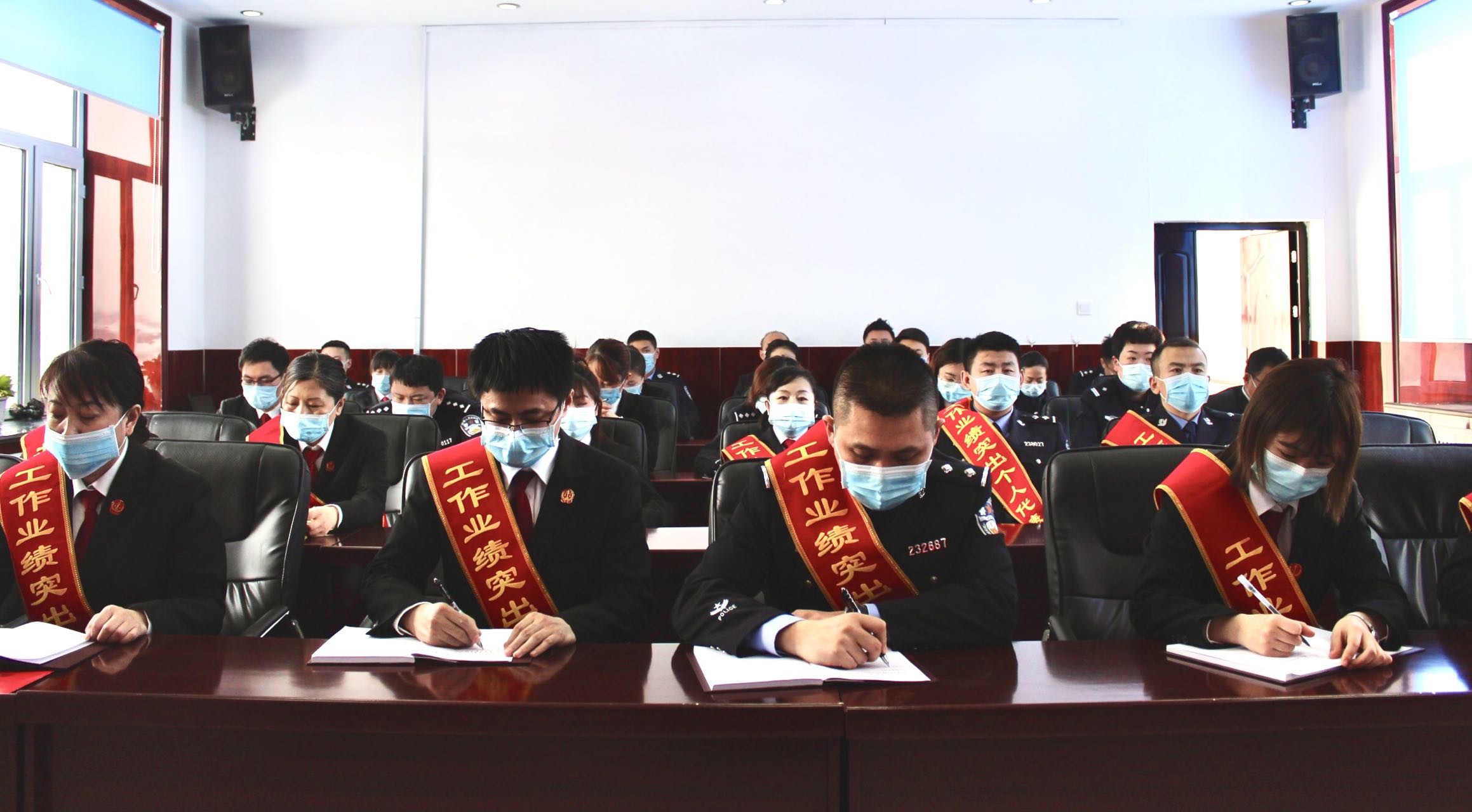 全体干警要向先进看齐,理性思考2021年度工作开展的成败得失,要以受到表彰的庭室和个人为榜样,比学赶超、永争一流,推动工作质效在新的一年里持续突破、再上层楼。