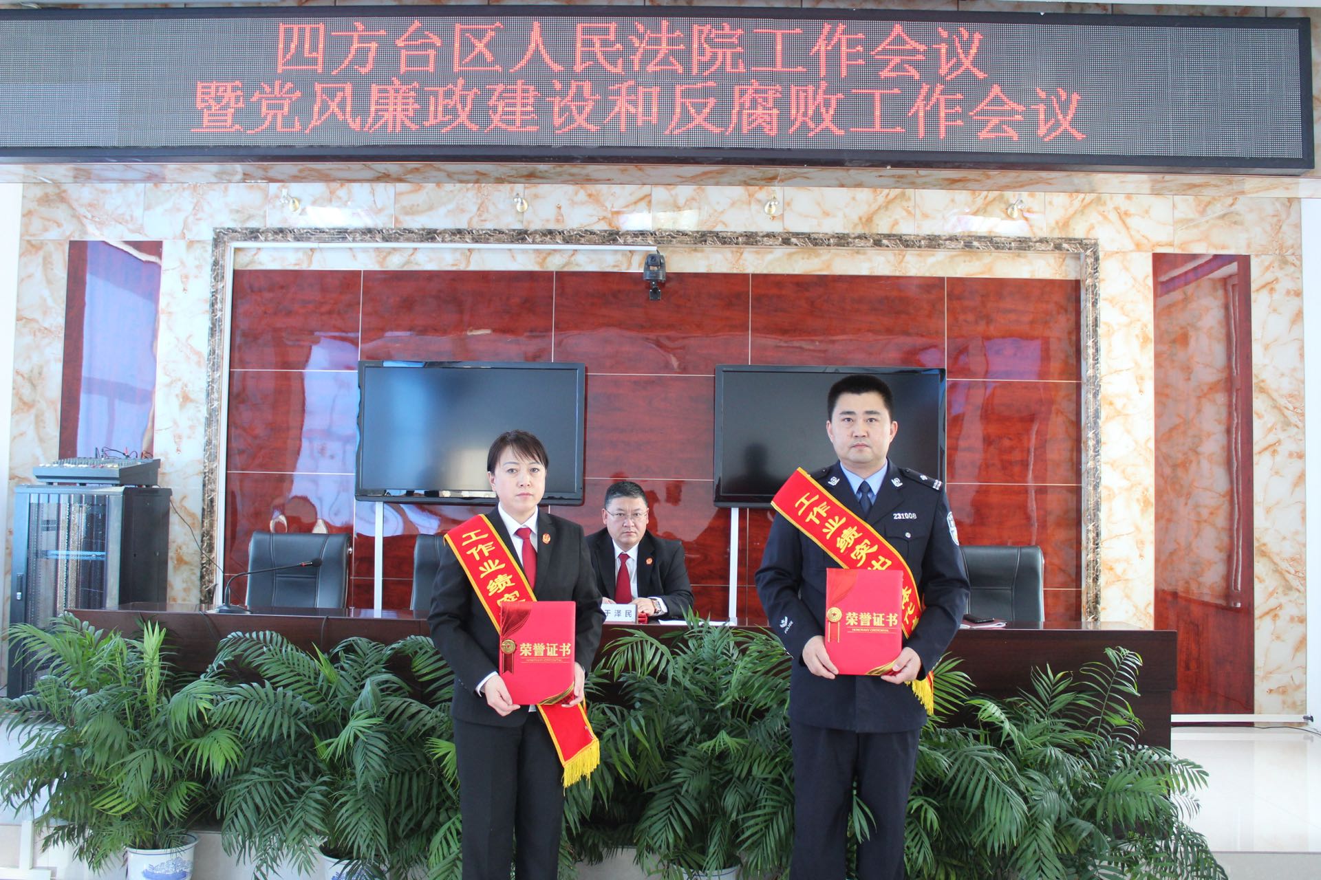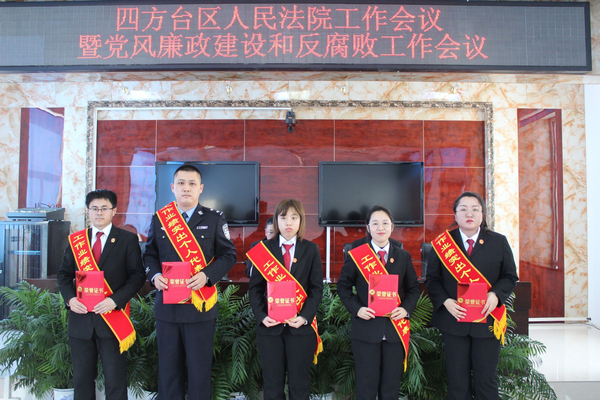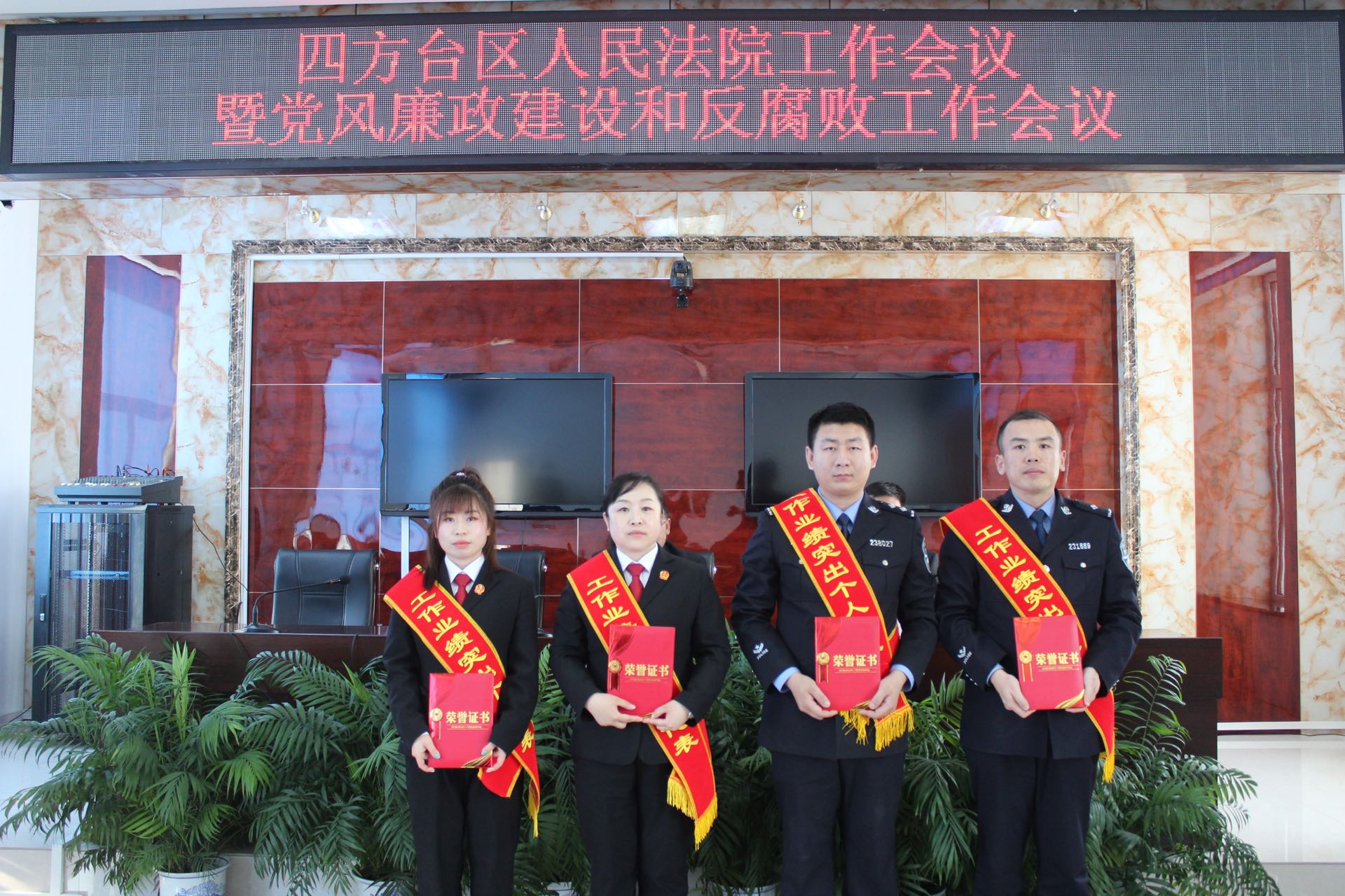 2.宣读四方台法院2021年度表彰决定并为工作业绩突出庭室和个人颁发奖状