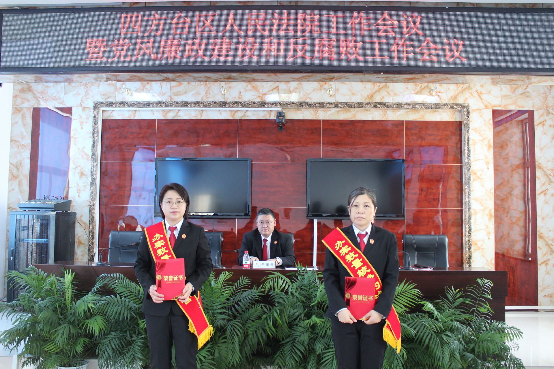 于泽民对获得表彰的庭室和个人,表示热烈的祝贺,并对违纪违法案件予以通报,为全院干警敲响警钟。同时提出三点要求,一要立足主责主业,努力提升人民群众司法获得感;二要立足指标提升,持续加强工作质效;三要立足转变作风,进一步强化制度执行。希望全体干警能够深刻领会此次会议精神,努力为维护好四方台区社会公平正义,推动法院高质量发展新局面作出更大贡献。